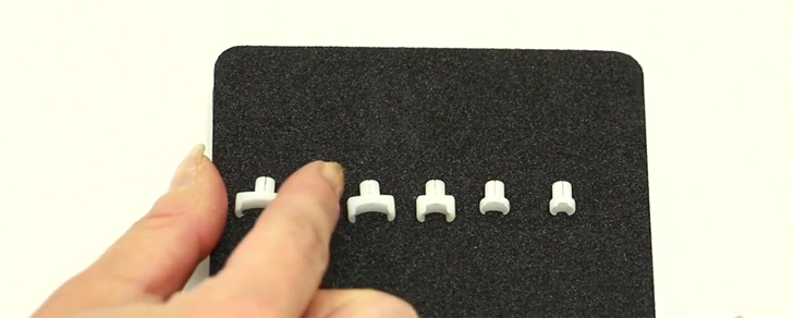 爪押え具は、爪の裏と密着する部分の幅に合わせ、はがされる刺激を加えずに爪の端だけ持ち上げることができる保護パーツ。これにより、痛みなく巻き爪を治すことができるのです。
